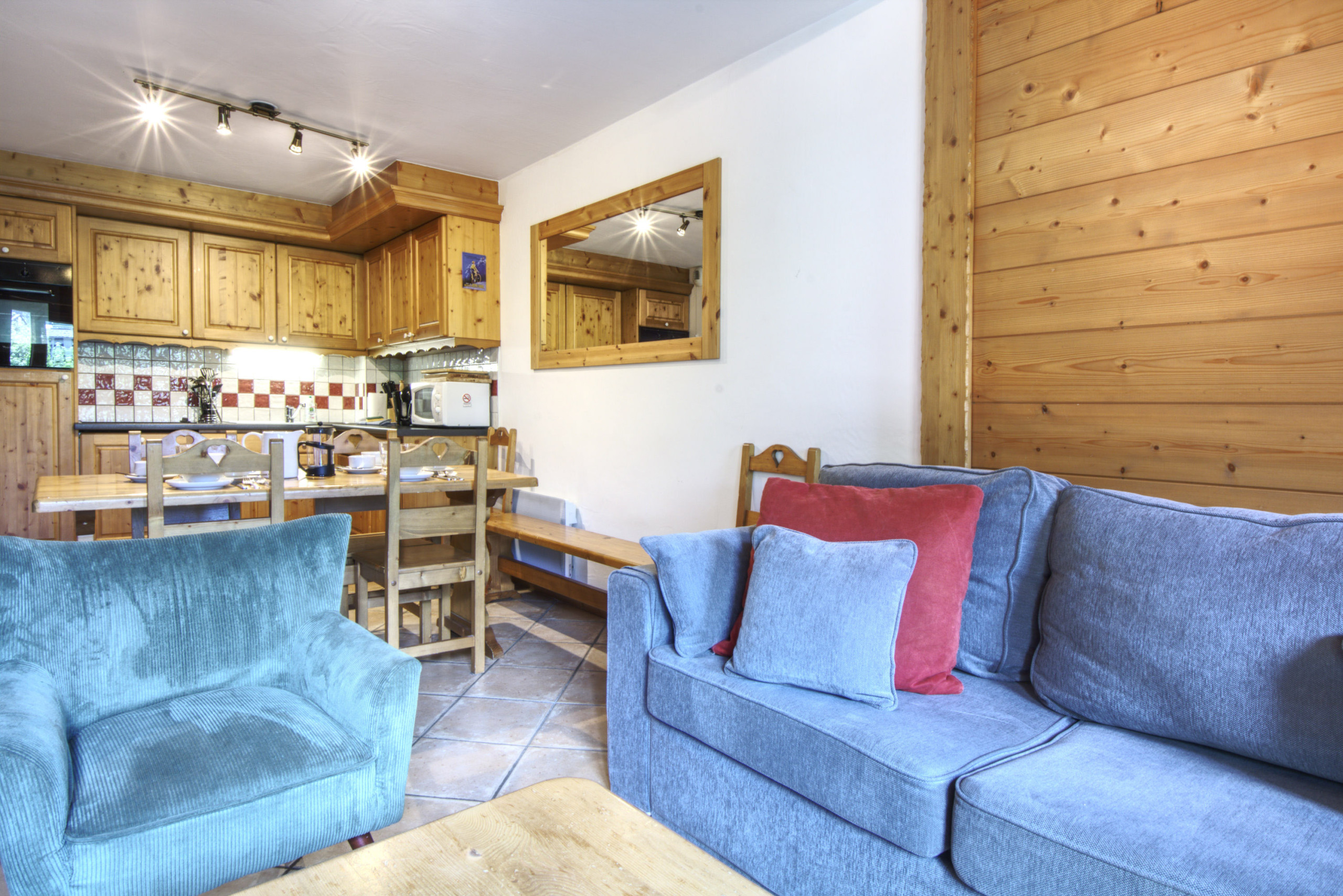 Spacieux séjour décloisonné avec cuisine, table à manger pour six et salon avec canapé confortable et télévision. Les portes-fenêtres coulissantes s'ouvrent sur le balcon, qui dispose de sièges d'où vous pourrez apprécier la superbe vue sur le Mont Blanc.