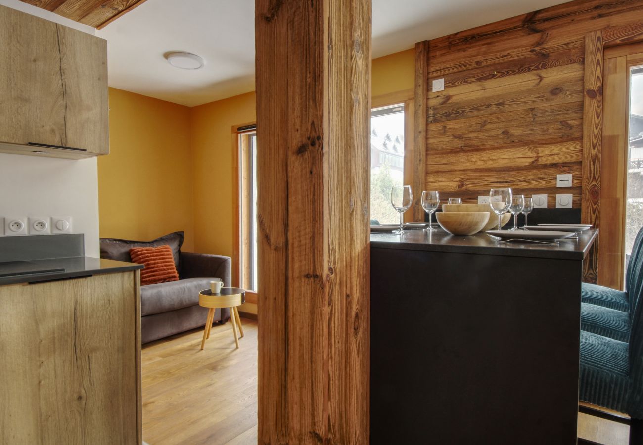 60m² ground floor apartment • 2 flexible bedrooms • 1 bathroom • Private underground garage • 100m from main street • 200m from Le Savoy lift