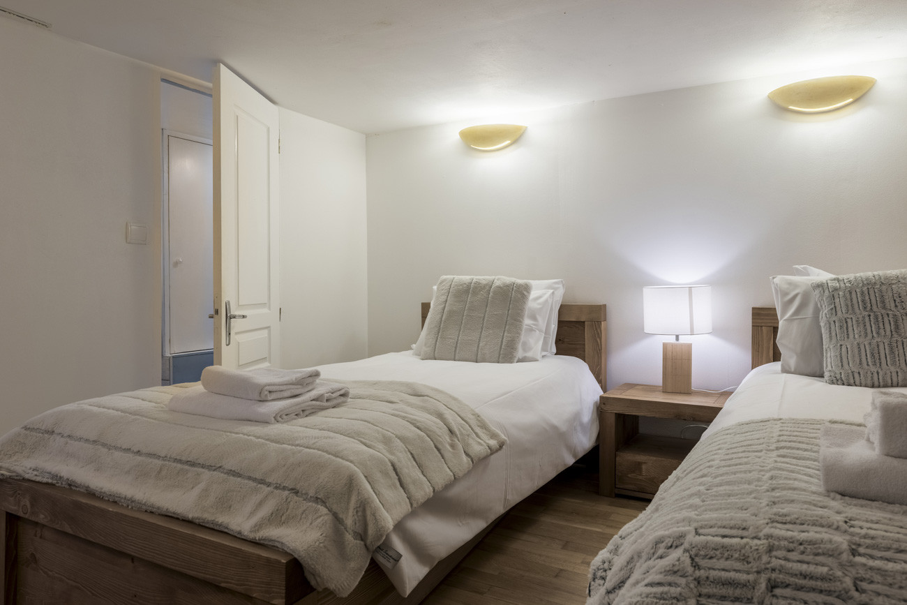 Bedroom 4 (basement): twin single beds, height restricted to 1.7m, with ensuite shower room (sink and toilet).